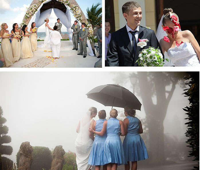 The next natural phenomena you should take into consideration are the wind. It will blow out; the bride’s delicate hairstyle will be a nest, so terrible! Remember to avoiding hurricane season.