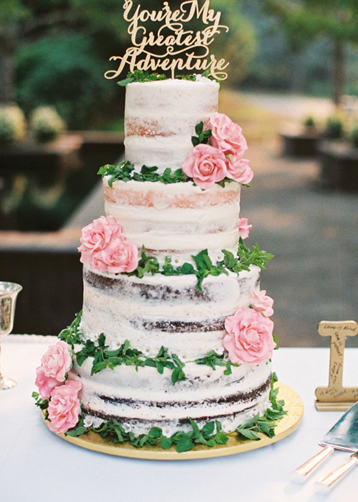 Edible flower-adorned cake for garden wedding
