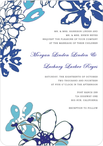 Blue watercolor wedding invitations for garden wedding