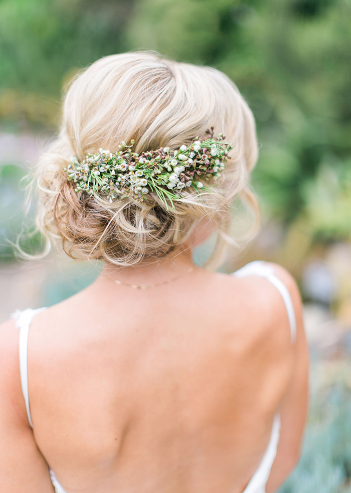 Chignon worn to the side is chic and romantic, it is looks beautiful for any type of garden wedding venue. And don’t forget to ask your hairstylist to hook you up in the flower department.