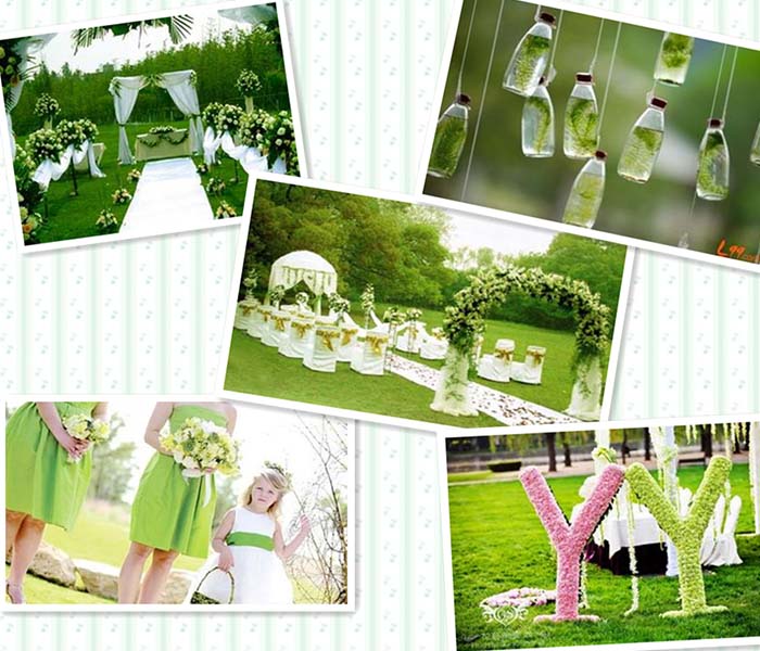 Thinking about spring, color green come up to mind at once, green grass, green shoots, green the smell of air, it is the best choice of perfect spring wedding. It is the embodiment of vitality. Near to nature outdoor wedding is modern ideas of spring wedding.