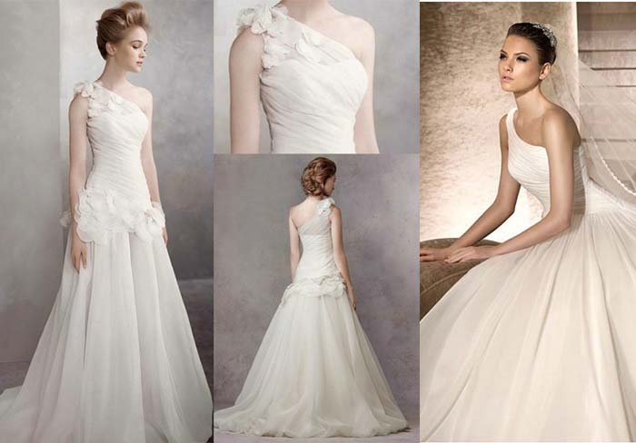 The bride worn shoulder wedding, with a belt, her 50’s style of mesh veil is produced by the bride’s own!