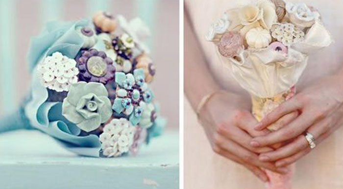 The wedding bouquet is full of all kinds of tiny flowers, exquisite.