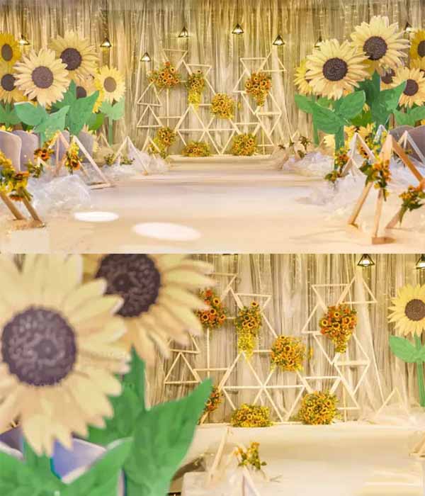 details of bright vibe sunflowers wedding decorations