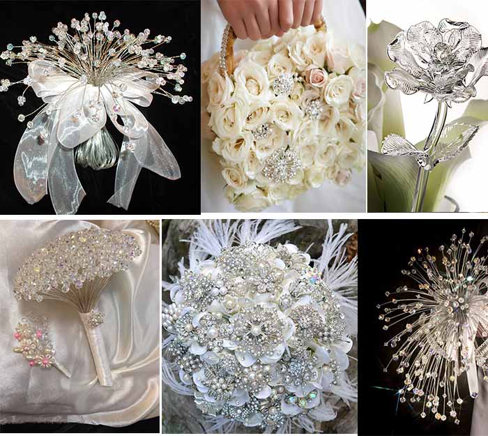 Crystal bridal bouquets, crystal wedding flowers are environment protection ways to reduce the use of fresh flowers.