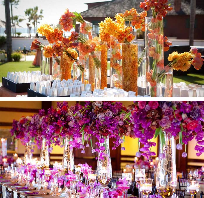 If you are nontraditional brides, we recommend that you can pair crystal with colorful flowers.