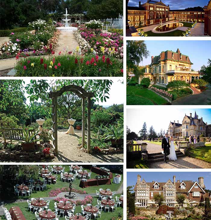 A garden with plentiful plants or flowers (especially rose) and statues or fountains are a popular choice. Historic Victorian buildings are also good choice.