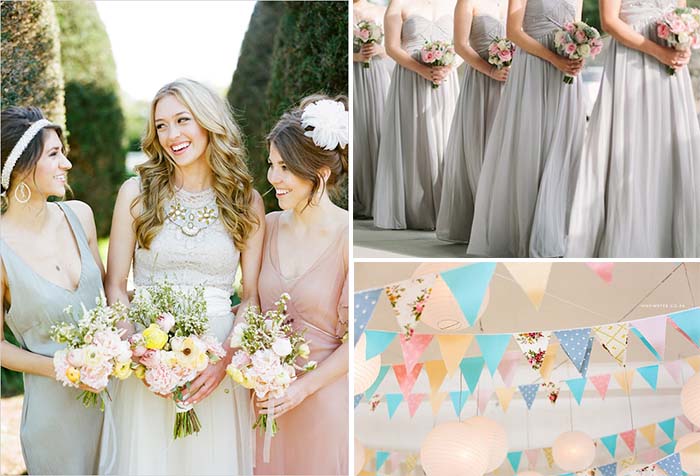 Pastel is the latest wedding color trends for 2014; it seems to be a growing trend for 2015 wedding. Pastel color palettes are soft and pretty, represent sense of tranquility, calmness and peace, they are sloe sassy, stylish and they can also be sexy.